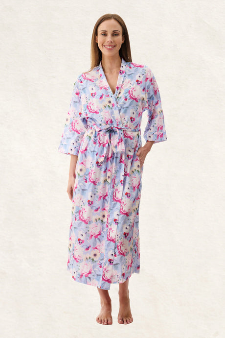 Floressents Cotton Fleur Kimono Robe (Bluestone)