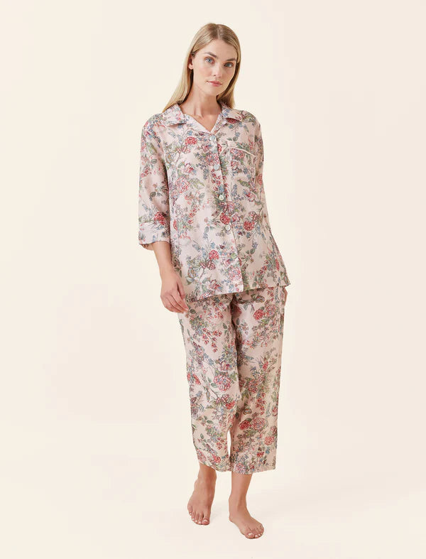 A light-as-air cropped PJ set designed for warm nights and relaxed mornings. Featuring a button-down top, ribbon trims, and an all-over floral print, it blends softness with timeless, feminine charm. Breezy and breathable, it’s a piece you’ll reach for night after night.