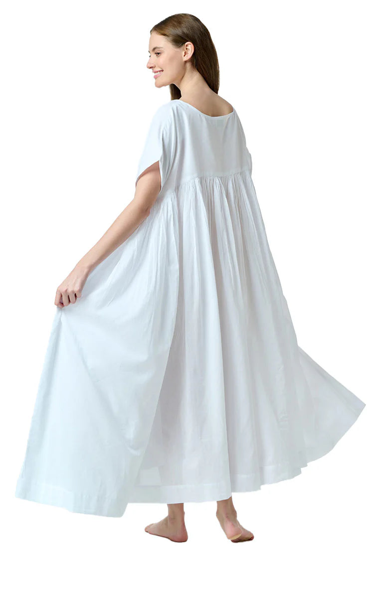 A luxurious day time dress by Arabella. Made in India from 100% cotton voile this dress features drop sleeve, a lined bodice and heavy gathering for modesty. The Susanna white dress is longer in length and has an uneven hemline. Wonderful pockets adds to the functionality of this comfortable and cool summer day dress. There is a lot of fabric in this dress. This wonderful garment is part of Arabella's premium luxury range.